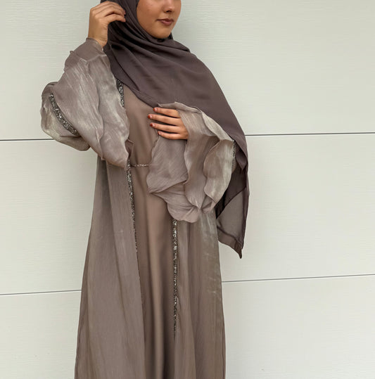 I bought this piece just before winter and have been wearing this on several occasions, I live a busy lifestyle and don't want to think about putting pieces together, this abaya gives me two options in one. It's so elegant and definitely trans seasonal, absolutely love it!