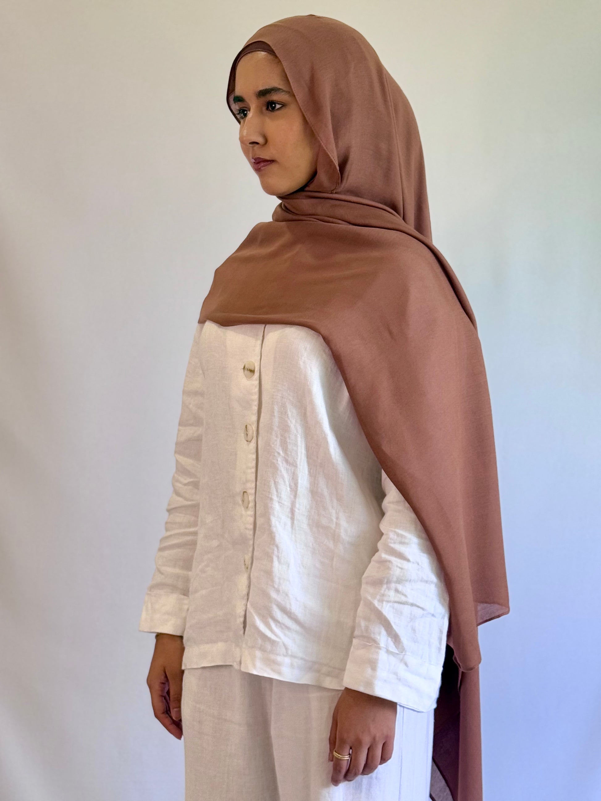 Our cocoa bamboo modal ALL-IN-ONE hijabs offer you the ultimate solution for a quick and chic look. Designed for effortless ease. This hijab features a sleek, streamlined design with an attached matching cap and discreet sewn-in magnets that keep everything neatly in place. Perfect for any day and any occasion. Enjoy a hassle-free experience and an effortlessly stylish look!