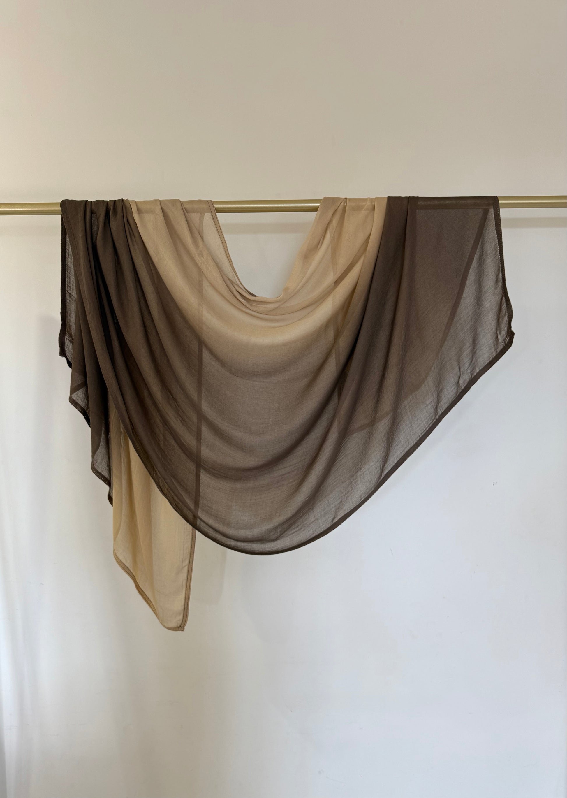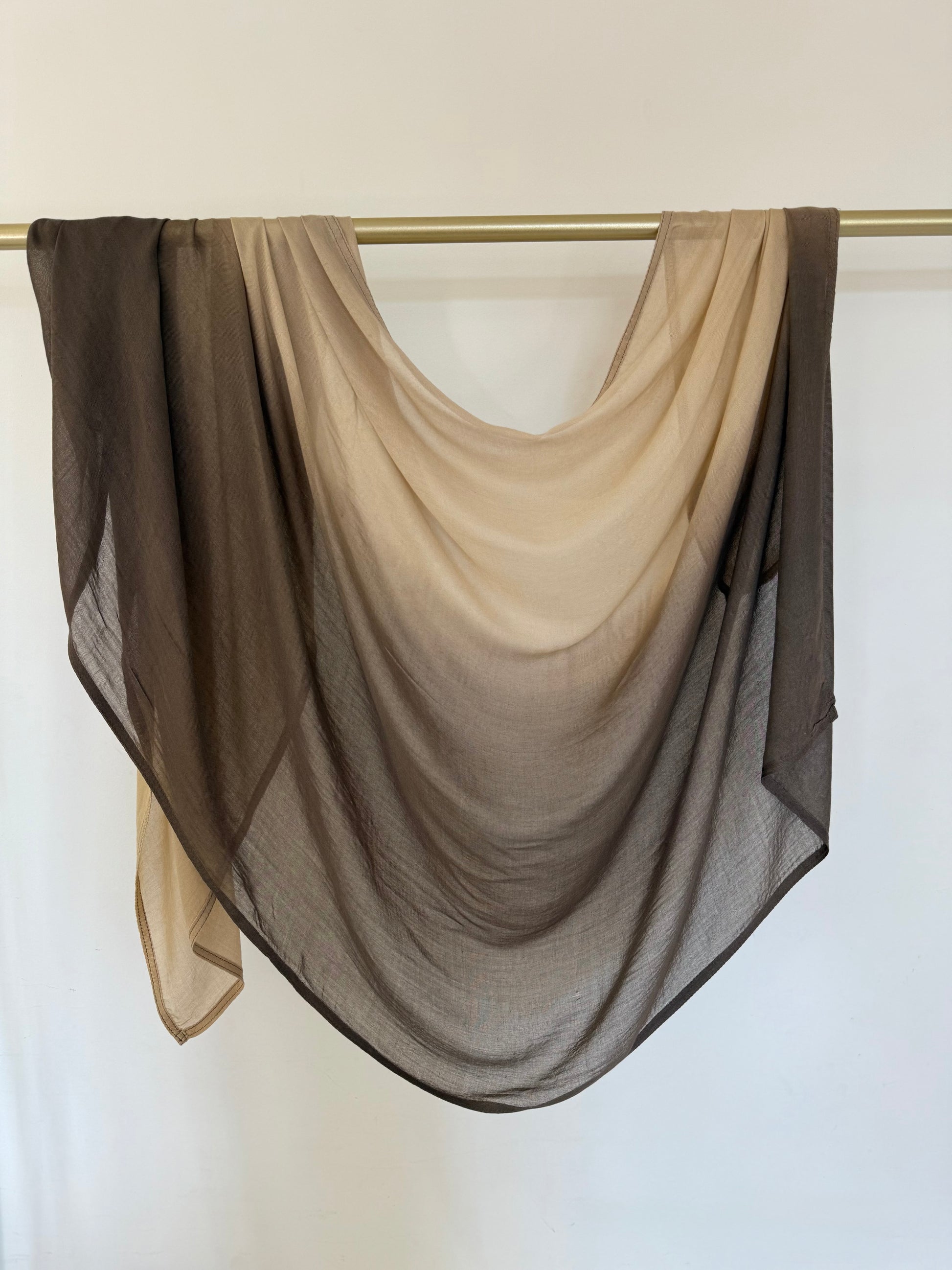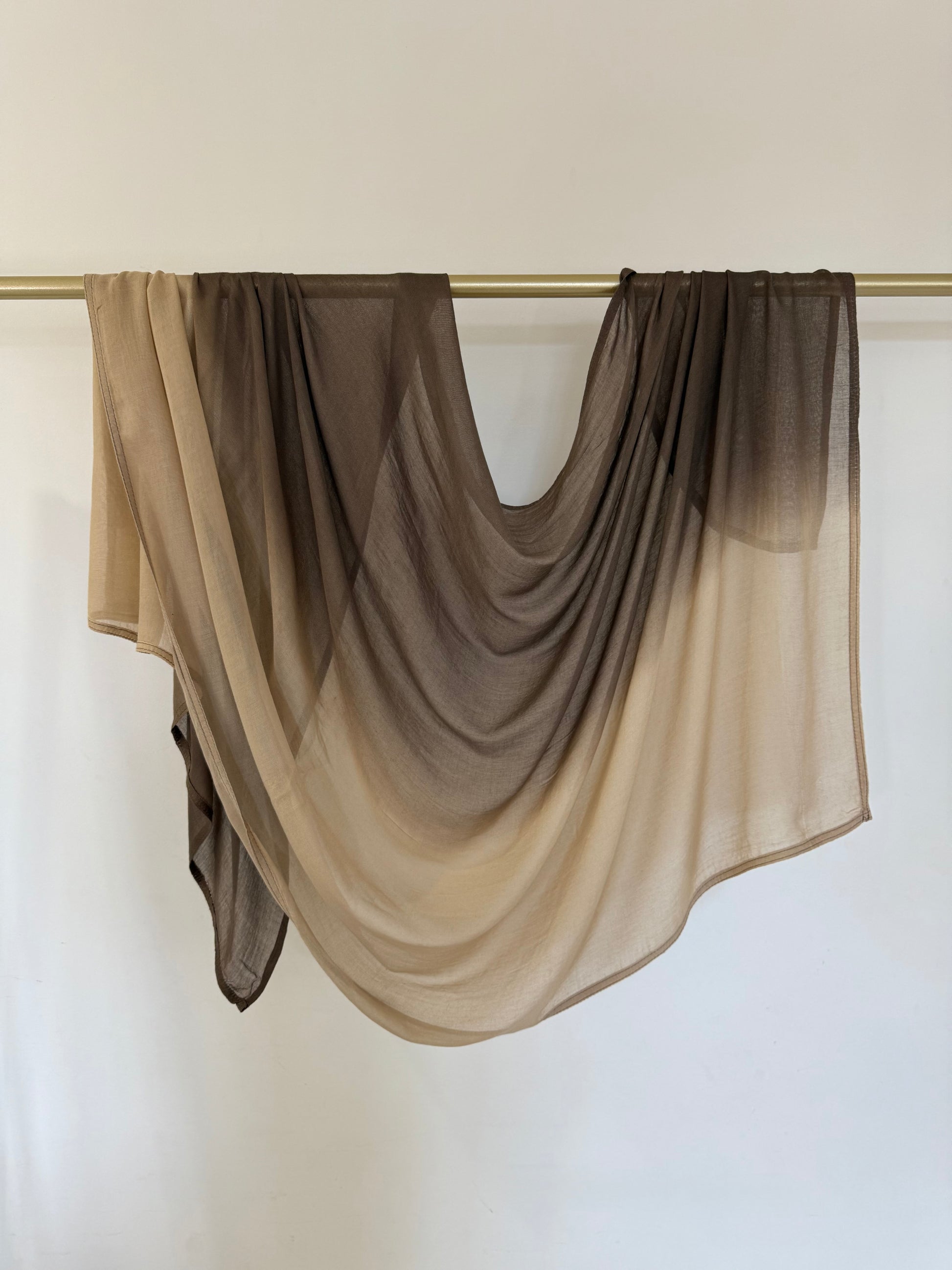 Our Mocha Ombre bamboo modal hijab is crafted from an exceptionally soft bamboo modal fabric, combining the natural breathability and moisture-wicking properties of bamboo with the silky smoothness of modal.